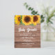 The invitation showcases a lovely wooden background, evoking the cozy and welcoming feel of autumn. The bright sunflowers add a cheerful touch, making this invitation perfect for a fall baby shower.