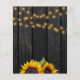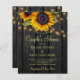 Rustic country wedding couple's shower stylish budget affordable invitation template on dark brown barn wood background featuring big yellow gold sunflowers bouquets, strings of twinkle lights, and a faux gold typography script. +++++++++++++++ Easy to personalize with your details! ++++++++++++ The invitation is suitable for summer or autumn fall outdoor garden backyard rustic farmhouse country couple's parties or barbecues. ++++++++++ PLEASE READ THIS BEFORE PURCHASING! This is a budget affordable wedding card printed on a paper sheet (each sheet has one card). ++++ For the best rapport price-quality, our advice is to choose the Semi-Gloss paper type (it is thick enough to be used for stationery) ++++ If you need envelopes, choose the ENVELOPE OPTION. +++ Double-check all the information and spelling of your text because you will receive exactly what you see - no one else will check anything before printing. ++++ This card is designed for size 4.5" x 5.6". In the case you choose another size of the card and text goes outside page, everything needs to be fixed before adding the product to cart. Please ask for help.