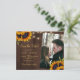 Elegant chic summer or fall wedding stylish BUDGET affordable save the date card template on brown barn wood featuring beautiful sunflowers bouquets, strings or twinkle lights, and a chic faux gold calligraphy script. ++++++++++++++ Easy to personalize with your details and photo! +++++++++++ Suitable for elegant summer or autumn fall rustic country outdoor backyard or barn weddings. ++++++++++++++++++++++ PLEASE READ THIS BEFORE PURCHASING! This is a budget affordable wedding card printed on a paper sheet (each sheet has one card). ++++ For the best rapport price quality, our advice is to choose the Semi-Gloss paper type (it is thick enough to be used for stationery) ++++ If you need envelopes, choose the ENVELOPE OPTION. +++ Double-check all the information and spelling of your text because you will receive exactly what you see - no one else will check anything before printing. ++++ This card is designed for size 4.5" x 5.6". In the case you choose another size of the card and text goes outside page, everything needs to be fixed before adding the product to cart. Please ask Live Design Service for help.
