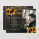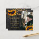 Elegant chic summer or fall wedding stylish BUDGET affordable save the date card template on dark brown barn wood featuring beautiful sunflowers bouquets, strings or twinkle lights, and a chic faux gold calligraphy script. ++++++++++++++ Easy to personalize with your details and photo! +++++++++++ Suitable for elegant summer or autumn fall rustic country outdoor backyard or barn weddings. ++++++++++++++++++++++ PLEASE READ THIS BEFORE PURCHASING! This is a budget affordable wedding card printed on a paper sheet (each sheet has one card). ++++ For the best rapport price quality, our advice is to choose the Semi-Gloss paper type (it is thick enough to be used for stationery) ++++ If you need envelopes, choose the ENVELOPE OPTION. +++ Double-check all the information and spelling of your text because you will receive exactly what you see - no one else will check anything before printing. ++++ This card is designed for size 4.5" x 5.6". In the case you choose another size of the card and text goes outside page, everything needs to be fixed before adding the product to cart. Please ask Live Design Service for help.
