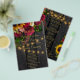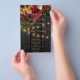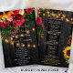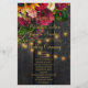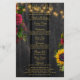 Elegant rustic budget wedding ceremony and party program PAPER FLYER (advertising type paper) template featuring beautiful bright yellow orange sunflowers and red burgundy marsala roses flower bouquets with strings of twinkle lights on a country style dark brown wooden background. +++++++++++ + Personalize it with your your details.+++++++++++ Suitable for rustic country vintage chic outdoor backyard summer garden or autumn fall farmhouse barn weddings.++++++++++++++++ PLEASE READ THIS BEFORE PURCHASING! This is a low budget affordable program printed on a FLYER. ++++ Please note that BUDGET PAPER IS THIN - You can upgrade to have this card printed on cardstock ++++ ENVELOPES NOT INCLUDED.