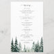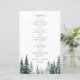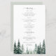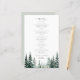 Rustic modern elegant typography trendy nature sage green pine tree forest destination budget affordable wedding menu template featuring a chic calligraphy script and watercolor pine trees woods.