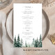 Rustic modern elegant typography trendy nature sage green pine tree forest destination budget wedding menu PAPER FLYER (advertising type of paper) template featuring a chic calligraphy script and watercolor pine trees woods. ++++++++++++++++++++++++++ PLEASE READ THIS BEFORE PURCHASING! This is a cheap budget wedding menu printed on a FLYER (advertising type of paper suitable for folded mailings). ++++ Please note that BUDGET PAPER IS THIN - You can upgrade to have this card printed on cardstock ++++ ENVELOPES NOT INCLUDED. +++ Double-check all the information and spelling of your text because you will receive exactly what you see - no one else will check anything before printing. ++++ This card is designed for size 5.5" x 8.5". ++