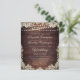 Rustic wedding invitations printed on lightweight paper ideal for conservative budgets and hand-delivering to guests. Beautiful dark country wood with string lights and ivory cream off-white lace with elegant script typography. All text is editable to change the wording to fit your needs. Contact the designer via Zazzle Chat or makeitaboutyoustore@gmail.com if you'd like this design modified, on another product or coordinating items.