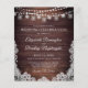 Rustic wedding invitations printed on lightweight paper ideal for conservative budgets and hand-delivering to guests. Beautiful country wood with glowing string lights, party lanterns and mason jars and accented with white lace. All text is editable to change the wording to fit your needs. Contact the designer via Zazzle Chat or makeitaboutyoustore@gmail.com if you'd like this design modified, on another product or coordinating items.