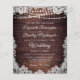 Rustic wedding invitations printed on lightweight paper ideal for conservative budgets and hand-delivering to guests. Beautiful dark country wood with string lights and white lace with elegant calligraphy script typography. All text is editable to change the wording to fit your needs. Contact the designer via Zazzle Chat or makeitaboutyoustore@gmail.com if you'd like this design modified, on another product or coordinating items.