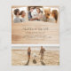 Budget, rustic and modern wedding invitation design features a large vertical photo on the front above your names in lowercase serif italics with an elegant ampersand and your wedding date against a beige farmhouse wood slats image. Cards reverse to three square photos at the top, classic wedding typography in the middle, and a horizontal photo at the bottom on the same wood. Minimalist wood wedding with 5 photo grid collage. For our template photos, we chose a neutral earthy color scheme of pale blue, white, and beige, but this versatile design was made with customization in mind and is sure to look good with any color combination. Click on "Personalize this template" to change the text and upload your own photos. If you want to edit fonts, placement, or colors, simply scroll to "Click to customize further" and use the Zazzle design tool. As part of the budget selection on Zazzle, this sheet isn't a standard invite size or paper quality. If you want this design on an invitation card you can find it in our store or use the Zazzle Make Machine to transfer it onto the product of your choice. Feel free to contact me through the button below for any design-related questions. Visit our store for more invitations!