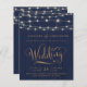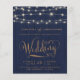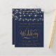 Introducing our charming rustic blue and string lights wedding invitation, elegantly adorned with gold script. This enchanting design combines rustic elements with a touch of romance, which sets the tone for your enchanting wedding celebration.