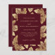 Budget Rustic Burgundy Red and Gold Foil Leaves Wedding Invite.