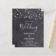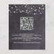 Invite friends and family to your wedding with these elegant yet rustic chalkboard and string lights wedding invitation cards. These unique slate all in one wedding invitations feature elegant white string lights on gray chalkboard slate design with wedding website qr code for easy RSVP's. Personalize these chalkboard wedding invitations with names, wedding date, and location. See our wedding collection for unique wedding invitations, wedding photo albums, guest books, party gifts, and more! COPYRIGHT © 2020 Judy Burrows, Black Dog Art - All Rights Reserved. Budget Rustic Slate String Lights QR Code Wedding