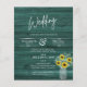 BUDGET Rustic Sunflower Green Yello Wedding Invite