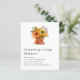 Rustic Sunflowers Fall Thanksgiving Invite. A budget price SMALLER 4.5” x 5.6” alternative. Available in a SEMI GLOSS 110 lb CARD STOCK which is the default option (recommended for invitations), OR a SATIN FINISH 80 lb THINNER PAPER STOCK (ideal for enclosures). Envelopes are an optional extra and are slightly larger than the card size. The header is large in stylish lowercase with the details beneath. A rustic illustration of a sunflowers and berries in a wooden container.