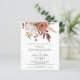 PLEASE NOTE There are two paper options to choose from for this size (4.5 x 5.6”) in the Budget range. For this product, I would recommend the semi-gloss which is a 110 gsm card stock, similar in thickness to a postcard. The Satin option is a much thinner paper 80gsm. The default is set to semi-gloss. PLEASE NOTE there is ONE per sheet. Budget Rustic Florals QR Code Wedding. Elegant florals and berries and grasses in autumn colors terracotta brown and cream, flow down from the top. Easily personalise the text to your own details. Add your QR code to your wedding website on the back makes this a convenient option for your guests to RSVP and see all the details without the need for separate RSVP and details cards. Your QR code will be automatically generated to update the sample code in the design, when you simply change the sample URL in the template with your own wedding website URL.