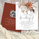 A value for money BUDGET alternative on a smaller size 4.5 x 5.6” semi-gloss 110lbs weight, which is of similar thickness to a postcard (however is not suitable to use as a postcard.). PLEASE NOTE there is ONE per sheet. Budget Rustic Terracotta Florals QR Code Wedding. Elegant florals and berries and grasses in autumn colors terracotta brown and cream, flow down from the top. The Wedding Of is in a set handwriting style script. Easily personalise the rest of the text to your own details. Add your QR code to your wedding website on the back makes this a convenient option for your guests to RSVP and see all the details without the need for separate RSVP and details cards. Your QR code will be automatically generated to update the sample code in the design, when you simply change the sample URL in the template with your own wedding website URL.
