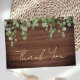 Send out Thank You notes to your friends and family from your wedding with these rustic wood with eucalyptus greenery, modern thank you cards. Customize these wedding thank you cards with your personal message. These unique greenery wedding thank you cards will make a lasting impression, your guests, family and friends! COPYRIGHT © 2020 Judy Burrows, Black Dog Art - All Rights Reserved. Budget Rustic Wedding Greenery Thank You Note Card