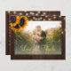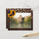 Rustic sunflowers and string lights on brown barn wood photo thank you elegant BUDGET affordable wedding postcard with a chic gold typography script. +++++++++ Personalize with your names, photo and text! ++++++++++ Suitable for floral summer or autumn fall / garden backyard rustic country themed weddings. ++++++++++++++++++++++ PLEASE READ THIS BEFORE PURCHASING! This is a budget affordable wedding card printed on a paper sheet (each sheet has one card). ++++ For the best rapport price quality, our advice is to choose the Semi-Gloss paper type (it is thick enough to be used for stationery) ++++ If you need envelopes, choose the ENVELOPE OPTION. +++ Double-check all the information and spelling of your text because you will receive exactly what you see - no one else will check anything before printing. ++++ This card is designed for size 4.5" x 5.6". In the case you choose another size of the card and text goes outside page, everything needs to be fixed before adding the product to cart. Please ask Live Design Service for help.