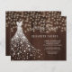 White shiny diamonds wedding dress on a dark brown barn wood background with strings of twinkle lights making a modern elegant rustic inspired bridal shower invitation. ++++++++++++ PLEASE READ THIS BEFORE PURCHASING! This is a budget affordable card printed on a paper sheet (each sheet has one card). ++++ For the best rapport price-quality, our advice is to choose the Semi-Gloss paper type (it is thick enough to be used for stationery) ++++ If you need envelopes, choose the ENVELOPE OPTION. +++ Double-check all the information and spelling of your text because you will receive exactly what you see - no one else will check anything before printing. ++++ This card is designed for size 4.5" x 5.6". In the case you choose another size of the card and text goes outside page, everything needs to be fixed before adding the product to cart. Please ask Live Design Service for help.
