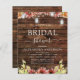 Budget Rustic Country Outdoors on Dark Wood with Burgundy, Orange and Yellow Sunflowers with Mason Jars on String Light Autumn or Fall Wedding Bridal Shower Invitations - includes beautiful and elegant script typography for the special Bride to Be celebration.