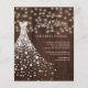 White shiny diamonds wedding dress on a dark brown barn wood background with strings of twinkle lights making a modern elegant rustic inspired bridal shower invitation PAPER FLYER. +++++++++++++++ Suitable for rustic country farmhouse outdoor or backyard bridal parties. ++++++++++++++ PLEASE READ THIS BEFORE PURCHASING! This is a budget affordable card printed on a FLYER. ++++ Please note that BUDGET PAPER IS THIN - You can upgrade to have this card printed on cardstock ++++ ENVELOPES NOT INCLUDED. +++ Double-check all the information and spelling of your text because you will receive exactly what you see - no one else will check anything before printing. ++++ This card is designed for size 4.5" x 5.6". In the case you choose another size of the card and text goes outside page, everything needs to be fixed before adding the product to cart. Please ask Live Design Service for help.
