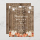 Rustic Country Barn Wood Thanksgiving Pot Luck party design with a string of lights mason jar lanterns plus watercolor Pumpkins, easy to personalize with the templates set up for you.