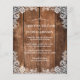 This rustic wood and lace country wedding invitation is a charming and romantic way to invite guests to your special day. It features a wooden background with a subtle grain texture, delicate lace accents, making it perfect for a country-themed wedding or for couples wanting a warm and intimate feel. Use the design tools to update the text and the font.