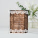 This rustic wood and lace country wedding invitation is a charming and romantic way to invite guests to your special day. It features a wooden background with a subtle grain texture, delicate lace accents, making it perfect for a country-themed wedding or for couples wanting a warm and intimate feel. Use the design tools to update the text and the font.