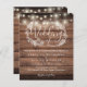 Featuring pretty string lights and a hand-drawn floral garland, this elegant budget rustic wood wedding invitation can be personalized with your information in chic lettering on a wood panels background. Designed by Thisisnotme©