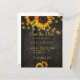 Rustic elegant fall wedding stylish save the date template BUDGET affordable postcard on dark brown barn wood background featuring yellow gold sunflowers bouquets. +++++++++++ Easy to personalize with your details on both sides! +++++++++++++++++ The invitation is suitable for elegant summer or autumn fall rustic country | farmhouse floral weddings. ++++++++++++++++++++++ PLEASE READ THIS BEFORE PURCHASING! This is a budget affordable wedding card printed on a paper sheet (each sheet has one card). ++++ For the best rapport price quality, our advice is to choose the Semi-Gloss paper type (it is thick enough to be used for stationery) ++++ If you need envelopes, choose the ENVELOPE OPTION. +++ Double-check all the information and spelling of your text because you will receive exactly what you see - no one else will check anything before printing. ++++ This card is designed for size 4.5" x 5.6". In the case you choose another size of the card and text goes outside page, everything needs to be fixed before adding the product to cart. Please ask Live Design Service for help.