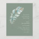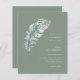 Invite your guests in affordable boho style with this Budget Sage Boho Feather Minimal Wedding Invite. Design features a bohemian theme teal blue speckled watercolor hand painted feather against a sage green background. Details of your special day are aligned to the right side of the design. *Click the edit button to customize font type, size, color and more.* If you need matching items or have a question, contact me via the "message" button below or at themintymaker@gmail.com