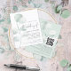 A value for money BUDGET alternative on a smaller size 4.5 x 5.6” semi-gloss 110lbs weight, which is of similar thickness to a postcard (however is not suitable to use as a postcard.). PLEASE NOTE there is ONE invite per sheet. Budget Sage Eucalyptus Script QR Wedding Invitation. Add your QR code to your wedding website on the back makes this a convenient option for your guests to RSVP and see all the details without the need for separate RSVP and details cards. A branch of soft sage watercolor eucalyptus leaves are subtly to the background to the left with the typography partially overlaid on top and aligned right. A set handwritten script for The Wedding Of and the rest of the text you can easily personalise.On the back a coordinating sage background with the leaves blended into the background.