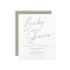 BUDGET Sage Olive Green Modern Simple Handwritten Script Baby Shower Invitation featuring our chic handwritten typography and your custom details. Baby showers are all about the mom-to-be and her baby on the way. So treat her to a chic, budget friendly, and handmade invitation with our new Simple Handwritten Script design. Choose a color & typeface that reflects the couple's style and customize it with your details. Perfect for your modern, boho, rustic, or chic affair. A great addition to your shower, whether it is for a baby girl, a baby boy, or gender neutral. **Our BUDGET paper is smaller and more delicate, but still beautiful!** For a comparison of paper types, please watch our video here: https://youtu.be/G0F9Am5HPD4 If you need assistance or matching items, please contact us at cedarandstring@gmail.com.