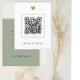 This sheet has a white front and a sage background on the reverse. On the front, you'll list the QR code of your wedding website where your guests can RSVP, as well as your names. On the reverse, you'll add a personal message to your guests. You can then place your first names, or if you prefer, you can delete this and sign it at home.