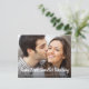 Budget friendly option to let family and friends on your original extended guest list know that your love and wedding will go on but now on a smaller scale. This downsized wedding announcement features your favorite engagement photograph with "Same Love, Smaller Wedding" written in large contemporary white script across the bottom, and underneath you can personalize your first names and the wedding downsize announcement. On the reverse side, you can personalize your message in more detail and add any virtual livestreaming, future celebrations and wedding website information.