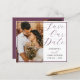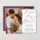 Elegant save the date announcement is prefect to get your wedding plans in motion. It features a photo template and large 'save the date' typography in burgundy on a white background. Customize with your own detials.
