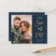 A modern, clean photo save the date announcement featuring calligraphy script save our date message.
