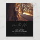Budget Wedding Black and White Save the Date Cards that have a photo on the front and back. The Handwritten Fall, Autumn, Summer, Winter Spring Save the Date cards contain a modern hand lettered cursive script typography that are elegant, simple and modern to use after you minimalist simple wedding day celebration.
