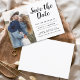 Budget Modern and Elegant Minimalist Photo Save the Date Wedding Postcard. The save the date invitation card includes modern hand lettered script typography with a chic and simple design that you can add your customized engagement photograph picture to.