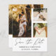 Elegant and simple save our date announcement. This template features space for 3 of your favorite couples photos in white with cool hand written calligraphy in gold. Easy to edit with your own unique details.