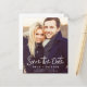 Budget Modern and Elegant Handwritten Script Portrait Vertical Photo Save the Date Wedding Card. The save the date invitation card includes a chic and stylish typography with a simple and minimalist design on a White background that you can add your customized engagement photograph picture to.