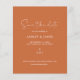 Chic script boho photo save the date flyer with your names, wedding date, location and wedding website in white elegant handwritten script calligraphy and modern typography on a burnt orange background. Simply add your personal details and favorite photo! Exclusively designed for you by Happy Dolphin Studio. If you need any help or matching products, please contact us through our store chat. We're happy to help you make your wedding the most beautiful day!