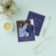 Chic script boho photo save the date flyer with your names, wedding date, location and wedding website in white elegant handwritten script calligraphy and modern typography on a navy blue background. Simply add your personal details and favorite photo! Exclusively designed for you by Happy Dolphin Studio. If you need any help or matching products, please contact us through our store chat. We're happy to help you make your wedding the most beautiful day!