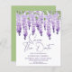 Budget Save The Date Watercolor Wisteria Lilac Wedding Save The Date Invitations features elegant watercolor wisteria flowers in soft lilac, lavender and purple with green leaves on a white background with your Save The Date information below. Personalize by editing the text in the text boxes provided. Designed for you by ©Evco Studio www.zazzle.com/store/evcostudio