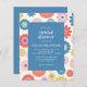 Budget Scandi Boho Folk Flower Blue Bridal Shower Invitation