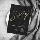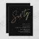 Modern minimalist 60th birthday party invitation features stylish faux gold foil number handwritten script Sixty and your party details in classic serif font on black background color, simple and elegant, great surprise adult milestone birthday invitation for men and women. the black background color can be changed to any color of your choice.