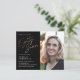 Modern minimalist 87th birthday party invitation features stylish faux gold foil number handwritten script text and your party details in classic serif font on black background color, simple and elegant, great surprise adult milestone birthday invitation for men and women. the black background color can be changed to any color of your choice.