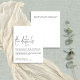 Script Black White Wedding Details Enclosure. A budget price SMALLER 4.5” x 5.6” alternative. Available in a SEMI-GLOSS 110 lb CARD STOCK which is the default option (thicker for invitations), OR a SATIN FINISH 80 lb THINNER PAPER STOCK (ideal for enclosures). Envelopes are an optional extra and are slightly larger than the card size. The header is in an elegant set handwriting style with the details beneath and lots of white space on a square shape for a contemporary style. Easily personalise with your own details.