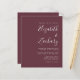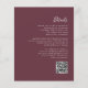 This simple modern wedding invitation features white text on a burgundy background. Add the names of the bride and groom in stylish handwriting calligraphy and the details in sans serif font. The reverse side provides space for wedding details, along with a QR code guests can scan to visit your website and RSVP, which saves the cost of printing and mailing separate RSVP. NOTE: Envelopes are not automatically included with these budget invitations, so please remember to choose the "white envelopes" option!