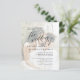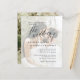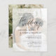 This timeless design features classic serif typography, elegant script lettering, and a modern typography layout. The first lines, inviting the guest to your special day, are aligned to the left, "the wedding of" appears centered, the first name to the left, the second name, and the rest of the event information to the right. Behind all of this, there is a photo of your choice with a white overlay so the text is still clear with any image. The reverse features a second custom engagement photo. Be sure to select the right options for you from the menu above! As part of the budget selection on Zazzle, this sheet isn't a standard invite size or paper quality. If you want this design on an invitation card you can find it in our store or use the Zazzle Make Machine to transfer it onto the product of your choice. Feel free to message me with any design-related questions - I'll be happy to help!