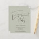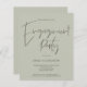 A value for money BUDGET alternative on a smaller size 4.5 x 5.6” semi-gloss 110lbs weight, which is of similar thickness to a postcard (however is not suitable to use as a postcard.). PLEASE NOTE there is ONE invite per sheet. Handwritten Script Engagement Party Sage Green Invitation Contemporary minimalist design with the main header Engagement Party in a set dark brown stylish script and the rest of the text you can easily personalise. You can also change the color and font of the editable text if you so wish via the Click to Customise Further option.