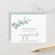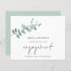 A value for money BUDGET alternative on a smaller size 4.5 x 5.6” semi-gloss 110lbs weight, which is of similar thickness to a postcard (however is not suitable to use as a postcard.). PLEASE NOTE there is ONE invite per sheet. Budget Script Eucalyptus Engagement Announcement. A minimalist botanical design to let everyone know your exciting news, Engagement is in a modern set script.The rest of the text you can easily personalise. Text and background colors can be changed if you wish via the customise further option.